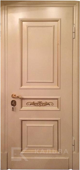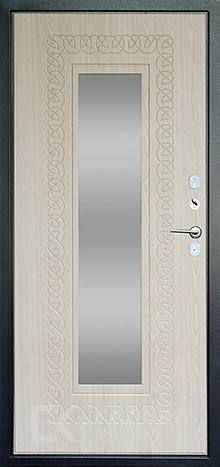 Фото «Стальная дверь слоновая кость с резной панелью и зеркалом №60»